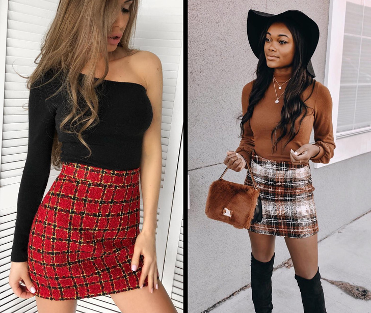 Клітка, смужка або ромб — вибирайте на свій розсуд. Причому фасон таких спідниць може бути абсолютно будь-яким: від асиметричної «косою» моделі до класичних спідниць-олівців або міні спідниць.