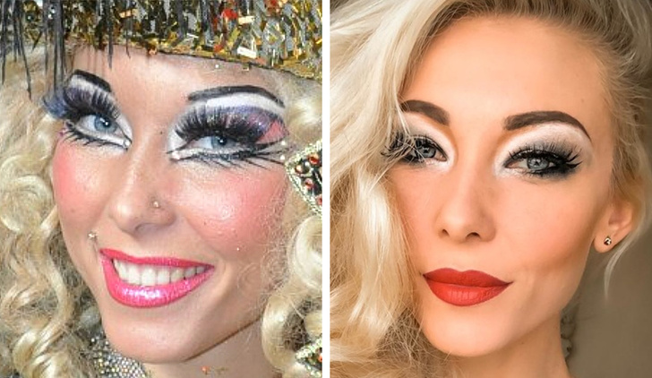 Сценічний макіяж повинен бути помітним і виразним, щоб обличчя артиста було помітно для глядача навіть на самому останньому ряду. Наша героїня не без самоіронії зізнається, що й сама далеко не відразу опанувала хорошим сценічним макіяжем.