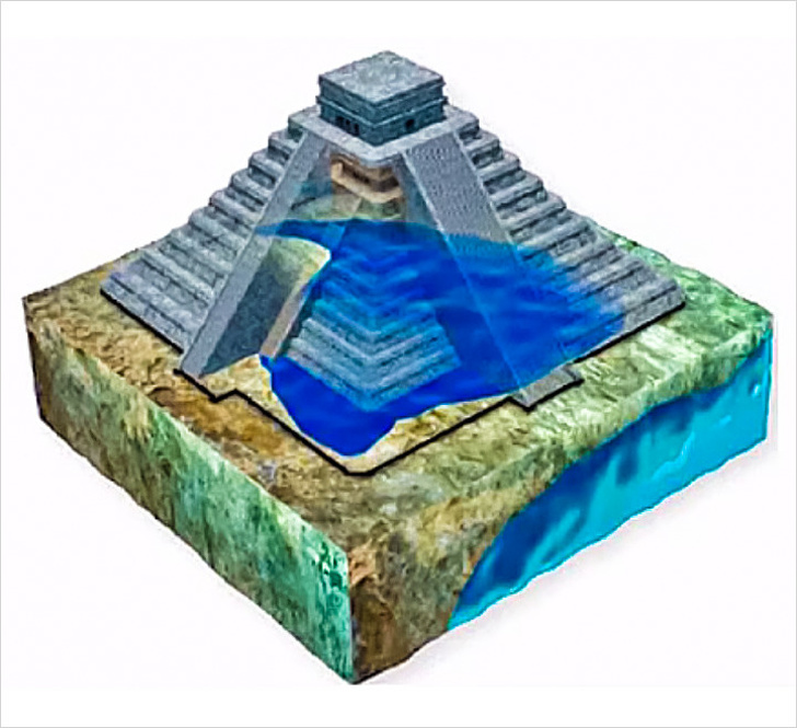 Ще одна таємниця цієї споруди стародавніх майя ховається всередині. Якщо зняти верхній шар каменів, то можна виявити піраміду менших розмірів, а в неї — ще й третю, найменшу, з потайним приміщенням. А зовсім недавно вчені в результаті электротомографического дослідження ґрунту виявили підземне озеро на глибині 20 м під фундаментом піраміди, яке може бути схожим на один зі священних сенотів майя. Археологи припускають, що в найближчому майбутньому озеро може розмити грунт, що призведе до руйнування піраміди.