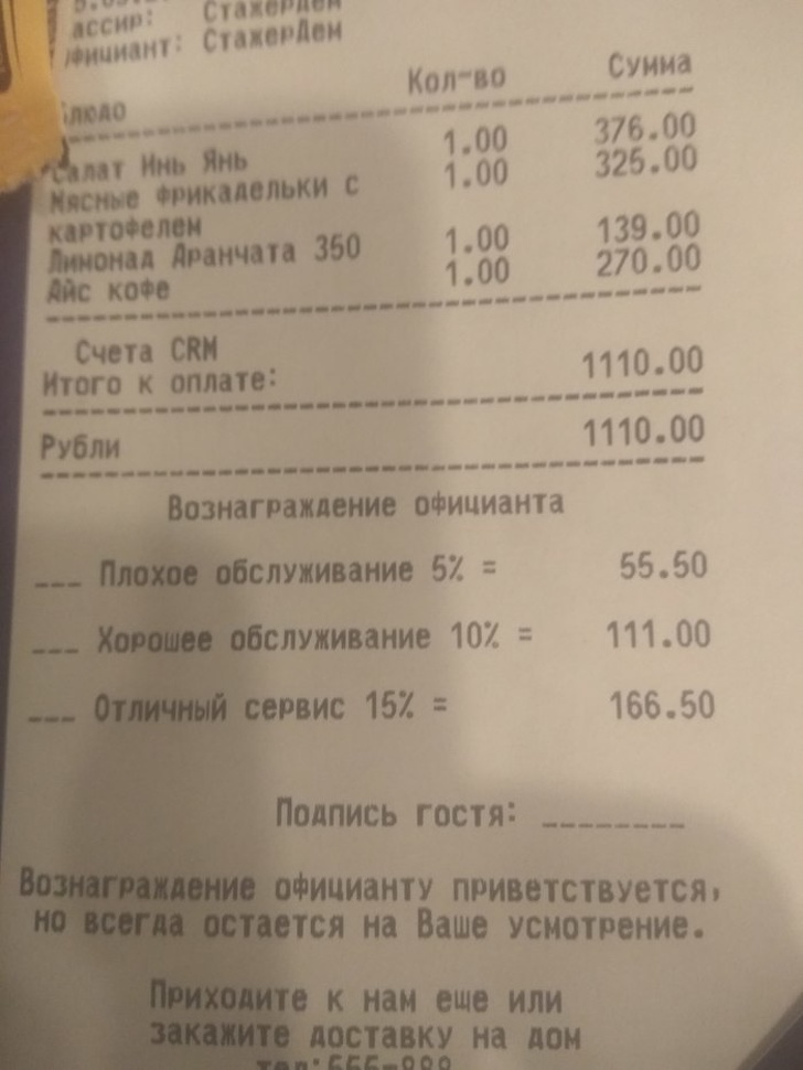 Співробітники ресторанів і кафе зацікавлені в тому, щоб клієнт залишився задоволений: це їх робота і гарантія винагороди у вигляді чайових. Тому набагато краще ввічливо озвучити свої зауваження, ніж залишитися незадоволеним самому і залишити офіціанта без подяки.