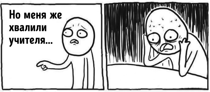 А для зразкового відмінника модель «погана оцінка = кінець світу» і «потрібно робити як в завданні і ніяк інакше», на жаль, переноситься і в життя, лише погані оцінки замінюються на кар'єрні провали, а завдання на шаблонне мислення.