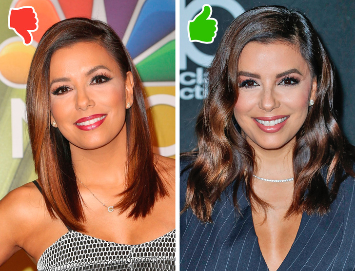 Якщо хочете кучері, то обмежтеся легким природними хвилями. А якщо віддаєте перевагу прямі волосся, то зробіть каскадну стрижку, як, наприклад, у Дженніфер Еністон або Різ Візерспун. Більш коротке волосся у особи допоможуть пом'якшити контур і візуально омолодять.