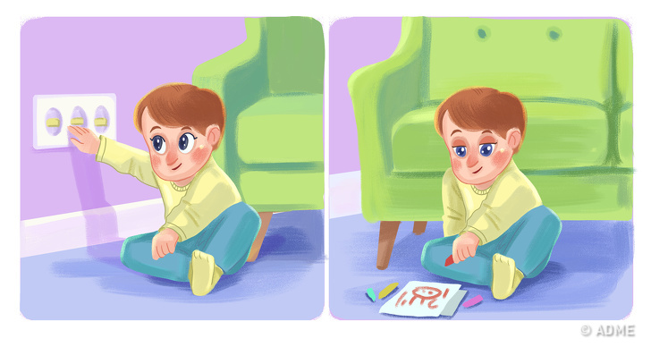 Заглушки для розеток вже давно не новинка. Ось тільки звичайні не так вже й складно витягнути, а уваги вони приваблюють чимало. Так що вибирайте складні заглушки-замки, а краще закрийте всі розетки меблями — це куди надійніше. Ну а якщо ви збираєтеся робити капітальний ремонт, то варто заздалегідь поставити самозакриваються розетки.