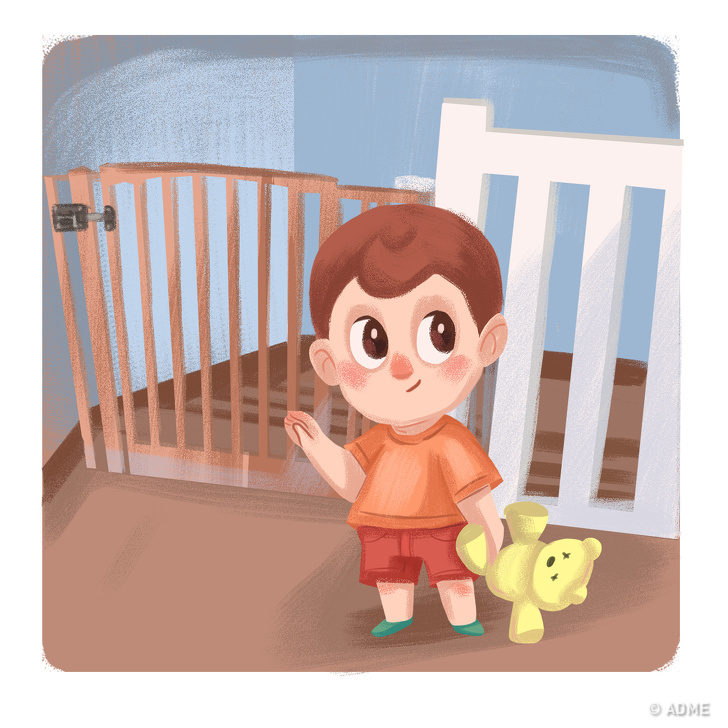 Якщо малюк достатньо підріс, щоб самостійно пересуватися сходами, але ви боїтеся, що він провалиться між широко розташованими стовпчиками перил, — спробуйте протягнути між поручнями рибальську або синтетичну мережа: вона не дасть дитині впасти. І не забудьте про ворота безпеки — дверцята, перекривають шлях на сходи самим маленьким.