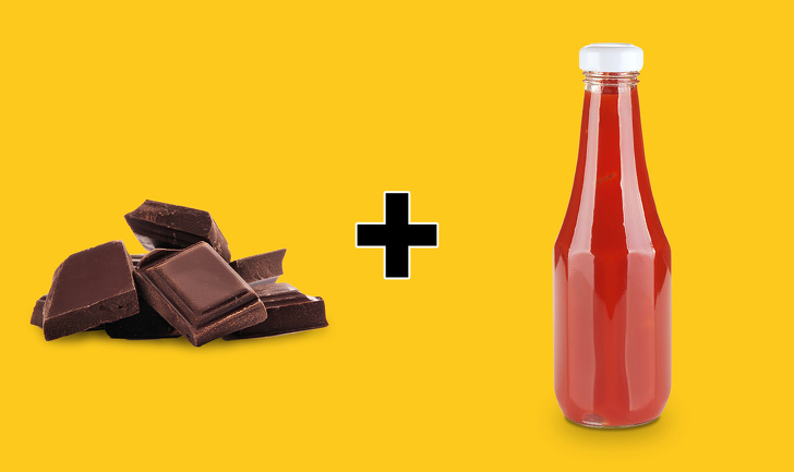У смаку шоколаду присутні нотки помідора, тому якщо полити шоколадну часточку кетчупом, це тільки посилить смак солодощі і зробить його більш насиченим.