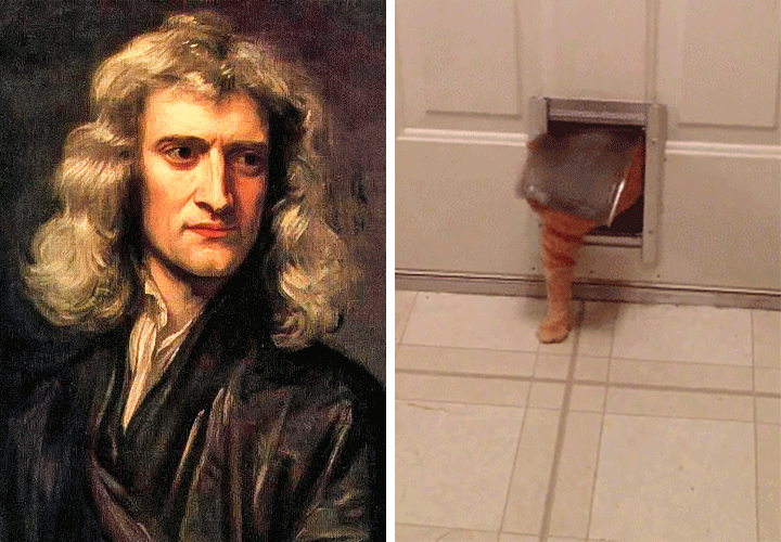 Великий винахідник і любитель яблук обожнював кішечок. Саме він першим випиляв отвір у двері і зробив маленькі дверці, щоб пухнасті друзі могли виходити і заходити, коли їм заманеться. Насправді тут немає нічого божевільного, одна суцільна милота.