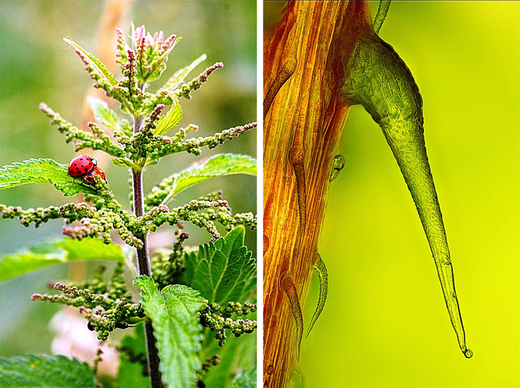 На листках і стеблі кропиви є дрібні волоски, які при найближчому розгляді виглядають як шипи і називаються «жалкі клітини». На кінці кожного з цих шипів знаходиться мішечок з рідиною — сумішшю 3 хімічних елементів: мурашина кислота, гістамін і вітамін В4. Відчуття печіння і опік з'являються, тому що при зіткненні цих волосків з шкірою вони ламаються і вміст мішечків потрапляє під і на шкіру, а безпосередньо мурашина кислота викликає подразнення і почервоніння. Прибрати неприємні симптоми можна за допомогою нейтралізації кислоти, наприклад лугом (содою).