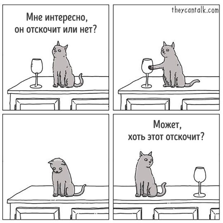 Згідно інформації з книги «Кішки» доктора Еллен Уайтлі, це шкідливе з нашої точки зору поведінка — насправді всього лише прояв хижих інстинктів. Спостерігаючи за тим, як кішки грають з спійманої на дачі видобутком у вигляді крота або ящірки, легко помітити, що це звичайне для котячих поведінку. Коли вихованець підштовхує лапою нерухомий об'єкт на столі, він всього лише слід волі свого інстинкту, підозрюючи, що одна з цих речей може виявитися живий мишкою. Ще одним поясненням може бути те, що кішці не вистачає уваги, і, коли вона зауважує, що господар завжди реагує на предмет, який упав і йде піднімати його (як правило, паралельно заговорюючи з самої хуліганкою і навіть побіжно погладжуючи її), вона робить висновок, що це хороший спосіб привернути вашу увагу.