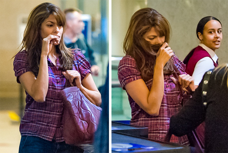 23. Єва Мендес ховається від камер у своїх волоссі