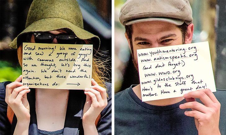 6. Емма Стоун і Ендрю Гарфільд вирішили використовувати увагу фотографів і направити його на корисну справу