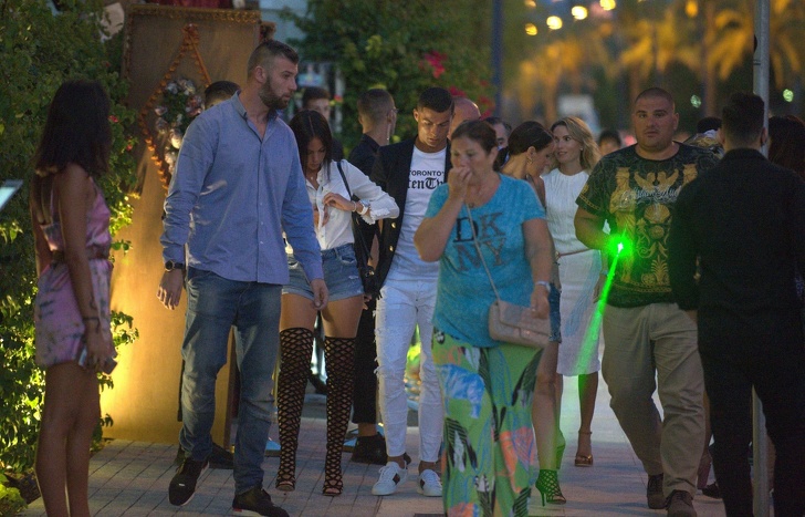 Кріштіану Роналду з друзями відправляється на вечерю на Ібіці в оточенні охоронців.