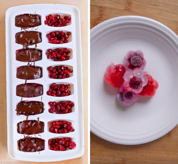 Не тільки коктейлі, але і проста вода стане набагато привабливішим, якщо додати в склянку кубики льоду з ягодами. Тільки пам'ятайте: ягоди краще заливати мінеральної або двічі кип'яченою водою (так лід буде прозорим). А ще таким же чином можна залити ягоди, наприклад, шоколадом: вийдуть смачні власноруч приготовані цукерки, чий склад ви зможете контролювати самостійно.