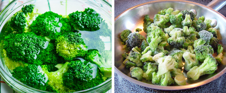 Брокколі перед заморожуванням слід поділити на суцвіття та замочити у підсоленій воді на 20-30 хвилин, щоб бути впевненим, що з неї точно вилізли всі комахи. Таким же способом можна вчинити і з кольоровою капустою. Добре буде, якщо перед заморожуванням ці два види капусти на кілька хвилин опустити в киплячу воду, потім дати охолонути, обсохнути і після цього заморозити.