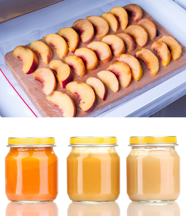 Пюре з персиків — кращий спосіб заморожування цих фруктів: в іншому випадку вони потемніють з часом і до того ж втратять в них міститься вітамін с. Якщо ж вам все-таки необхідно зберегти персики цілими, то слід зняти з них шкірку, потримати кілька хвилин у воді з лимонним соком (у співвідношенні 1:1), а після заморозити.