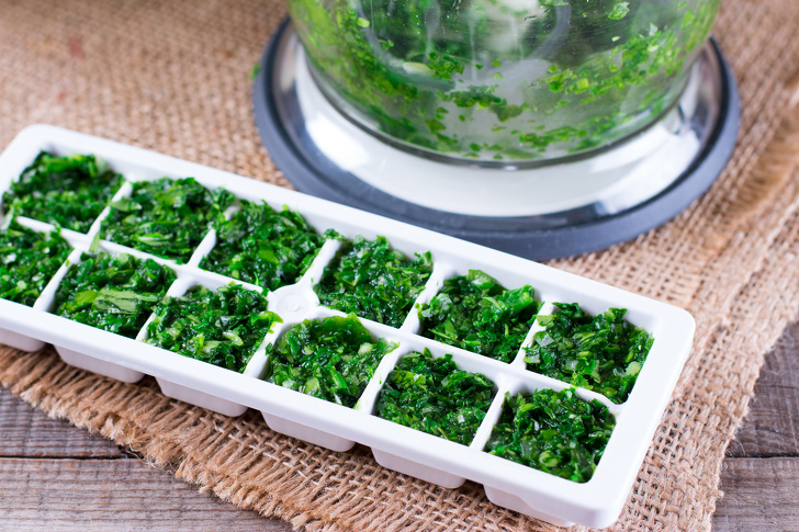 Найпростіше — це заморозка зелені. Для цього добре промийте її, підсушіть на рушник, дрібно наріжте і розкладіть по пакетах, випустивши з них зайве повітря. Можна навіть збирати суміші з різних трав. Ще один спосіб — укласти нарізані трави в контейнер для льоду і долити в нього масло, який-небудь соус або воду. Подібні заготовки буде зручно додавати в супи або інші страви незадовго до закінчення готування.