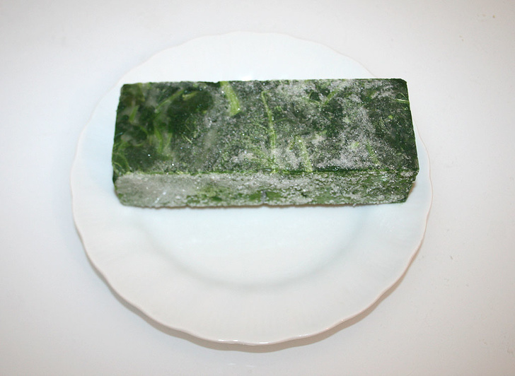 Шпинат попередньо помийте і обсушіть, а після наріжте соломкою, покладіть в пакет і заморозьте. Інший спосіб — опустіть листя в окріп на пару хвилин, потім подрібніть в блендері до кашоподібного стану і заморозьте у формочках для льоду.