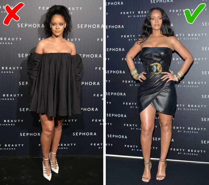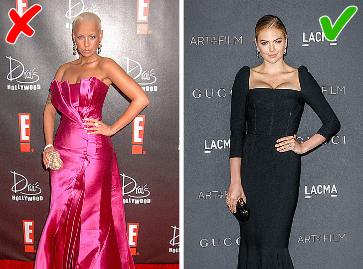Вибирайте сукні та блузки прямого, чіткого крою без зайвих прикрас. І краще, якщо вони будуть із щільної, навіть жорсткої тканини: такий матеріал краще підтримує груди і створює чіткий силует.