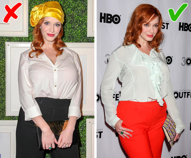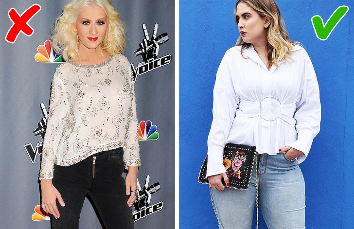 А кому, зрештою, взагалі потрібні ці гудзики, якщо вони насилу сходяться на грудях і роблять її візуально ще більше? Кейт Гріффін, засновниця і автор журналу для сучасних ділових жінок Corporette, радить відмовлятися від сорочок і блуз на гудзиках і замінювати їх жіночними блузками з рюшами, мереживом і жабо.