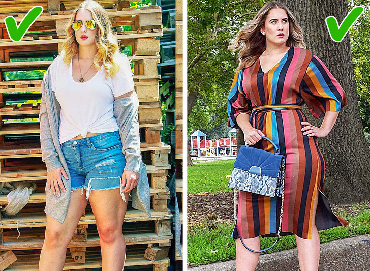 Володарки пишного бюста часто думають, що мішкуватий одяг вільного покрою допоможе їм приховати велику груди. Насправді все навпаки: такий одяг робить фігуру ще більш масивною, додає об'єму.