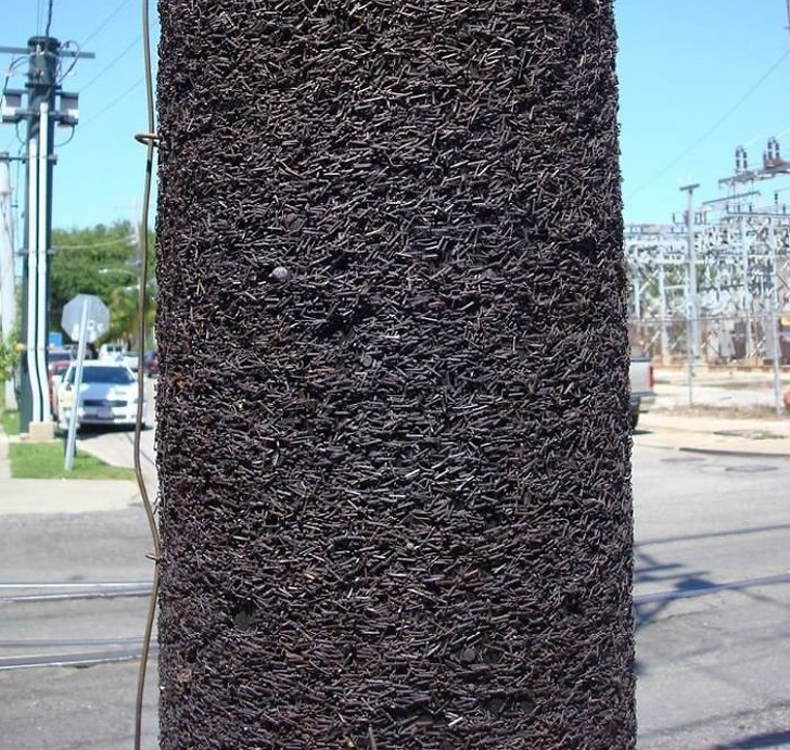 15. На цей стовп 40 років степлером кріпили афіші. Тепер на ньому немає живого місця!