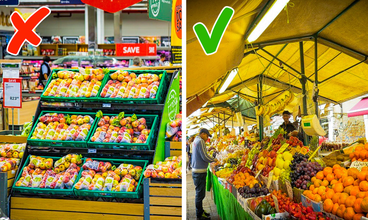 - Купуйте на ринках і торгуйтеся. Будній день та вечір — ідеальний час для покупки продуктів по більш низькій ціні. А ось вранці у вихідний день, як правило, завищують ціни.