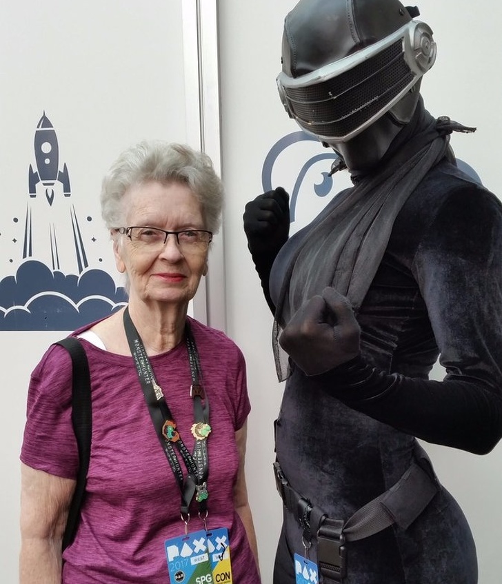Ширлі Каррі — постійний учасник геймерських тусовок і зборів косплейщиків. 82-річна пенсіонерка з штату Вірджинія на рівних спілкується з молоддю і активно ділиться своїми досягненнями у грі Skyrim. Ширлі веде сторінки в Instagram і Twitter, а за її каналом в YouTube стежать понад 290 тис. передплатників.