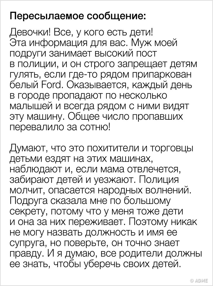 Не обов'язково автор вірусної розсилки хотів вас обдурити. Можливо, він сам обманутий: чогось не розуміє, чого не знає. Спробуйте самі розібратися з инфоповодом і скласти свою думку.