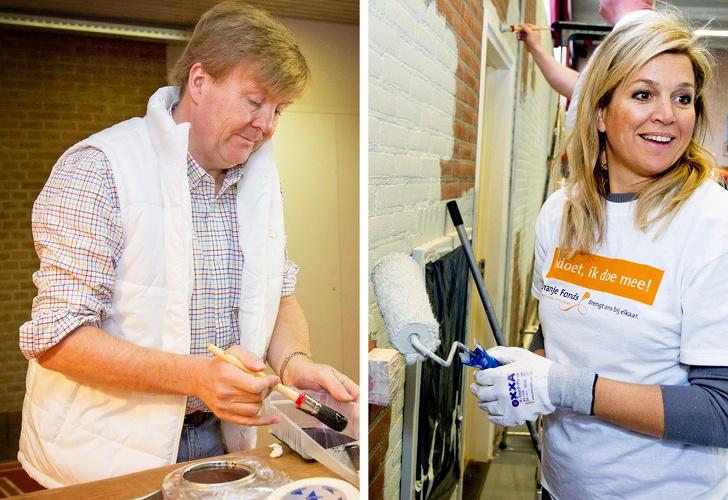 Король Віллем-Олександр і королева Максима допомагають фарбувати спортзал громадського центру.
