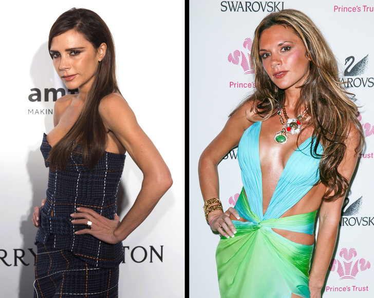 У колишньої учасниці групи Spice Girls колись були цілком апетитні форми, але потім Вікторія захопилася вдосконаленням свого тіла в бік схуднення. Вона щодня проводить у спортзалі по кілька годин і дотримується суворої дієти, через що виглядає надмірно худорлявою.