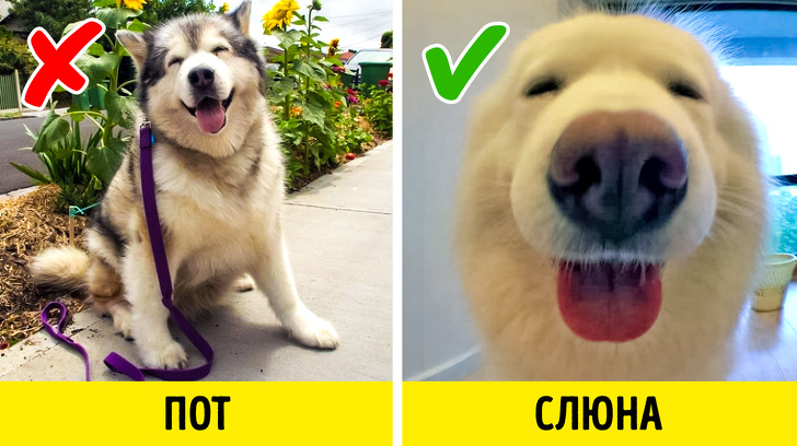 Мова і широко розкрита паща дійсно відіграють велику роль у терморегуляції цих тварин, однак до поту це не має ніякого відношення. У мові собаки розташовані слинні, але не потові залози, і саме вони виділяють відповідну рідину, коли тварині жарко. Широко відкрита паща допомагає вашому улюбленцю охолодитися і відновити нормальний ритм дихання.