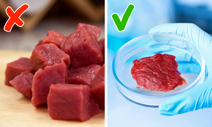 Крім тюфтельок з комах кращі уми світу зараз працюють над вирощуванням м'яса. Біохімік Патрік Браун (Patrick Brown) вже запустив проект Impossible Foods по випуску м'яса в пробірках. Вирішальну роль у вирощуванні котлет грають геми — молекули, що входять до складу клітин всіх рослин і тварин. Геми роблять нашу кров червоною, відіграють важливу роль при спалюванні калорій, а ще саме вони надають м'ясу його характерний аромат і смак.