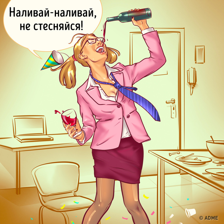 Корпоратив — це відмінний привід повеселитися і дізнатися колег краще, а то і зовсім побачити їх з несподіваного боку. Одна справа — формальна обстановка в офісі, інше — зустріч без краваток під запальну музику і в компанії з раскрепощающими напоями. Хоча всі офіси і працівники в них дуже різні, ці 16 персонажів обов'язково виявляться на будь-якій вечірці.