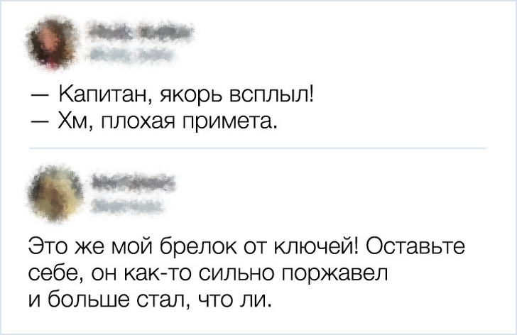 В одному з російських спільнот шукачів скарбів висить лаконічне оголошення: «Знайшли якір, повернемо господареві за скромну винагороду. Телефонувати 8 ххх ххх хх хх строго після обіду».