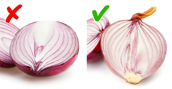 Ваші сльози — невід'ємна частина чищення цибулі? Забудьте про це. Не видаляйте його корінь до тих пір, поки не очистіть і не нарежете. Зробіть це після.