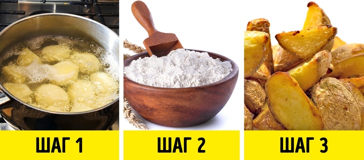 Для того щоб приготувати ідеально запечена картопля, спочатку відваріть її, а потім трохи обваляйте в борошні або манної крупі і відправте запікатися в духовку. Завдяки цьому ви зможете отримати чудову хрустку скоринку.
