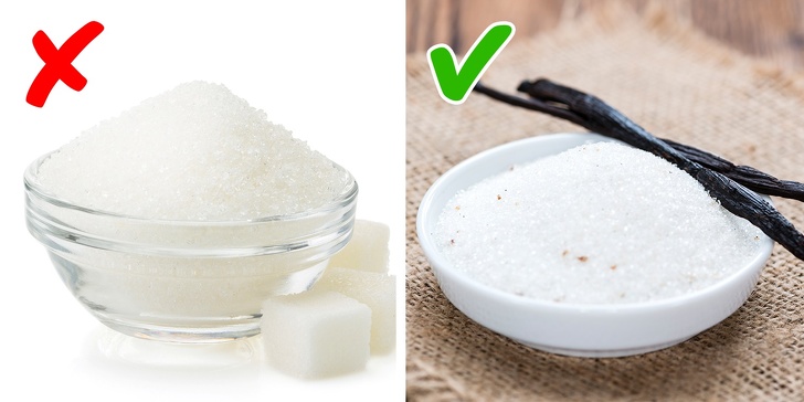 Зробіть цукор більш ароматним, додавши стручки ванілі в цукорницю. Також підсилити аромат можна за допомогою пари ложок мелених спецій: кардамону, мускатного горіха, кориці. Але не перестарайтеся, інакше отримаєте занадто нудотний запах.