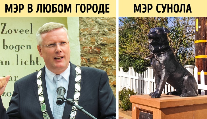 Пес по кличці Боско, суміш лабрадора і ротвейлера, був обраний мером невеличкого містечка Сунол (Каліфорнія). Боско служив на посаді мера з 1981-го і до смерті в 1994 році. Деякі газети писали, що собака на посаді мера — вада виборчої системи США, але жителі Сунола стверджували, що це було зроблено заради жарту. Статую Боско встановили в 2008 році.