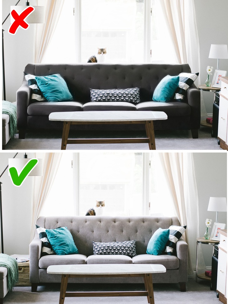 Масивні крісла або оксамитові портьєри цілком доречні в дворянських садибах або казкових замках. У звичайній міській квартирі такі меблі буде візуально скорочувати вільний простір і відтягувати на себе світло, роблячи кімнату більш похмурою. Це позитиву в життя точно не додасть, а захаращене простір гнітить людину.