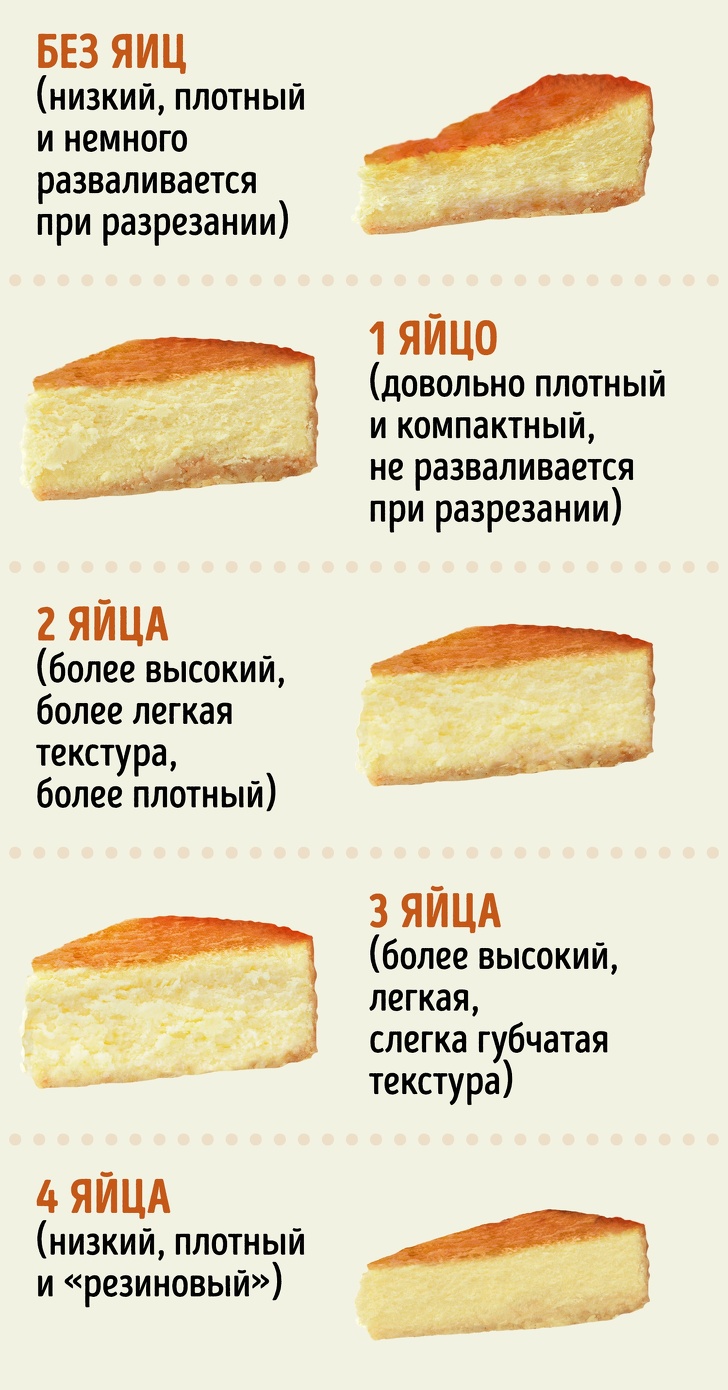 Наприклад, тісто без використання яєць частіше виходить надзвичайно густий по консистенції, блідого кольору, у той час як пиріг з яйцями більш золотистий і тонкий по консистенції. Інші подробиці кулінарного експерименту тут.