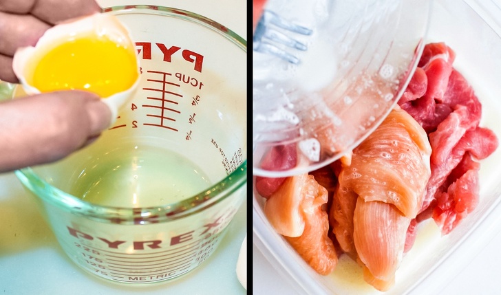 Спробуйте вмочити шматочки м'яса в суміш з кукурудзяного крохмалю і яєчних білків — це зробить його текстуру більш ніжною. Так відбувається тому, що, зберігаючи вологу на поверхні м'яса, дана суміш допомагає підтримувати стабільну температуру, а це зменшує шанси на те, що м'ясо підгорить. Детальна інструкція ось тут.