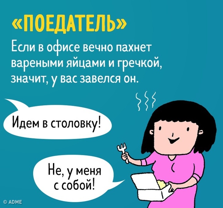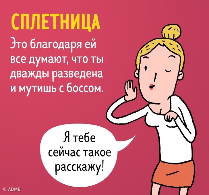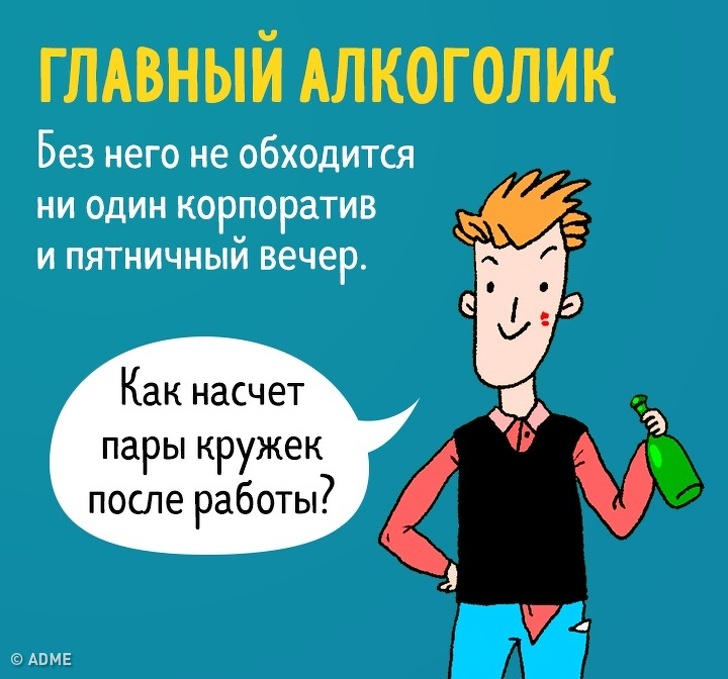 Робота — це окремий світ, в якому мирно (а іноді й не дуже) трудяться люди заради загальної справи. І часом, глянувши на свій колектив, розумієш, що кожен з колег прилетів зі своєї планети і абсолютно кожен — той ще персонаж. Але є певні типи людей, яких можна зустріти майже в будь-якому офісі.