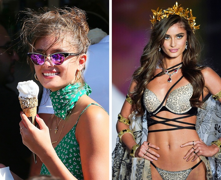 Якщо ви будете постійно обмежувати себе, то рано чи пізно зірветеся і знищите всю виконану роботу, каже дієтолог моделей. Як бачите, «ангел» Тейлор Хілл може дозволити собі великий ріжок морозива (або навіть фастфуд).
