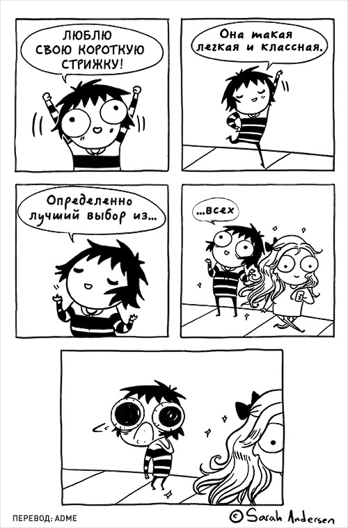 Навіть з віком жінки залишаються в душі тими маленькими, ранимими, забавними і пустотливими дівчатками зі своїм незвичайним поглядом на світ. Ілюстраторові Сарі Андерсон як нікому іншому, вдається вловити це дівоче чарівність і особливості у всіх нюансах, що виливається в дуже милі і правдиві комікси про жіночу долю.