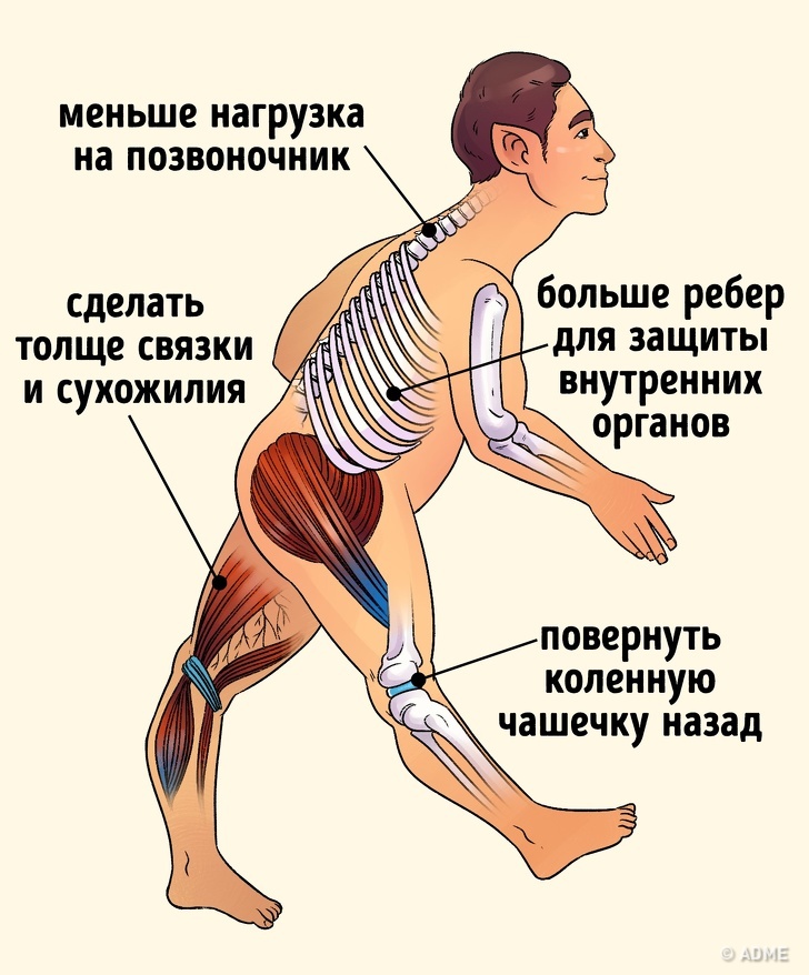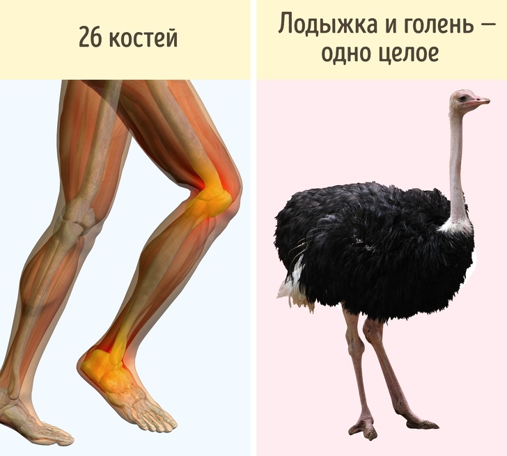 - Як було б краще? Більш зручно і «ефективно» влаштована нога у страуса: щиколотки і кістки гомілки у нього з'єднані, пальця тільки два, і ті теж беруть участь у процесі пересування. Також можна повернути назад колінну чашечку, адже вона дуже часто страждає при падіннях або ударах.