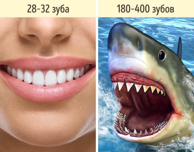 - Як було б краще? Залежно від виду в акули у пащі можуть перебувати від 4 до 28 рядів зубів, і втрата кількох з них зовсім не критична. Але, щоб розмістити більше зубів, рота людини теж має бути більше.