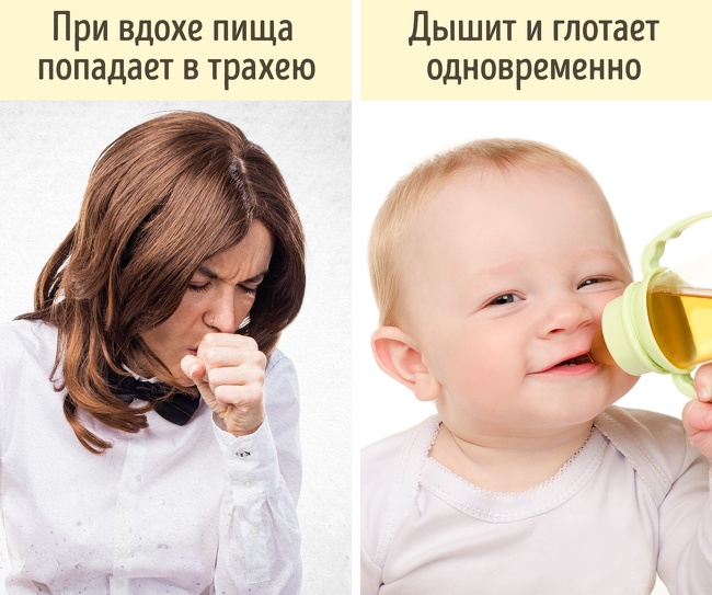 До речі, немовлята можуть ковтати й дихати одночасно, але з часом втрачають цю дивовижну здатність.