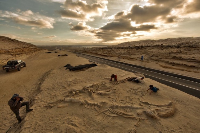 Чилійська пустеля Атакама. 2010 рік. Робітники, які розширювали шосе, побачили неймовірну картину: на території розміром з два футбольні поля — відмінно збереглися скелети 75 китоподібних, загиблих, як виявилося, від 2 до 7 млн років тому. До моря — більше 1 км. Як вони тут опинилися?