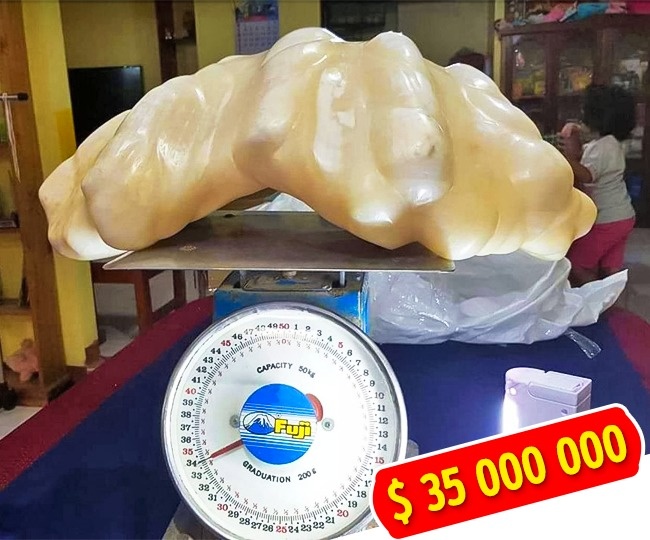 Філіппінський рибак застряг на скелях біля острова Палаван. Звільняючи якір, він знайшов величезного слимака, а всередині нього — перлину вагою 34 кг. Десять років рибак зберігав це скарб під ліжком, поки не сталася пожежа. Зараз гігантська перлина оцінюється в $ 35 млн.
