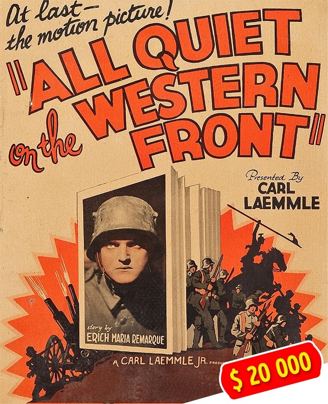 На ринку в Саммервилле Лаура Стоуфер купила примірник афіші одного старого фільму і вже вдома здогадалася відокремити від неї картонну основу. Всередині виявився постер фільму «На західному фронті без змін», який оцінюється в $ 20 тис.