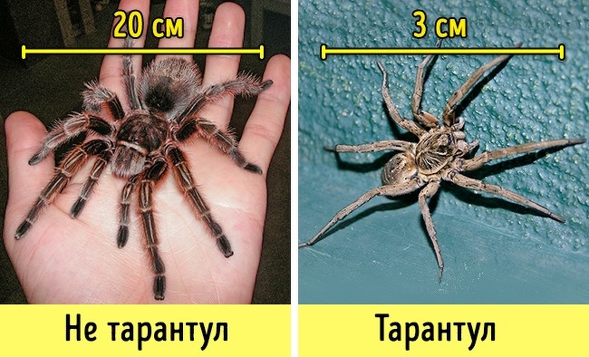 Тарантул набагато менше розміром, він мешкає на півдні Євразії і може вкусити — боляче, але в цілому не небезпечно. Пішла ця плутанина від того, що коли-то всіх великих або небезпечних павуків називали тарантулами.